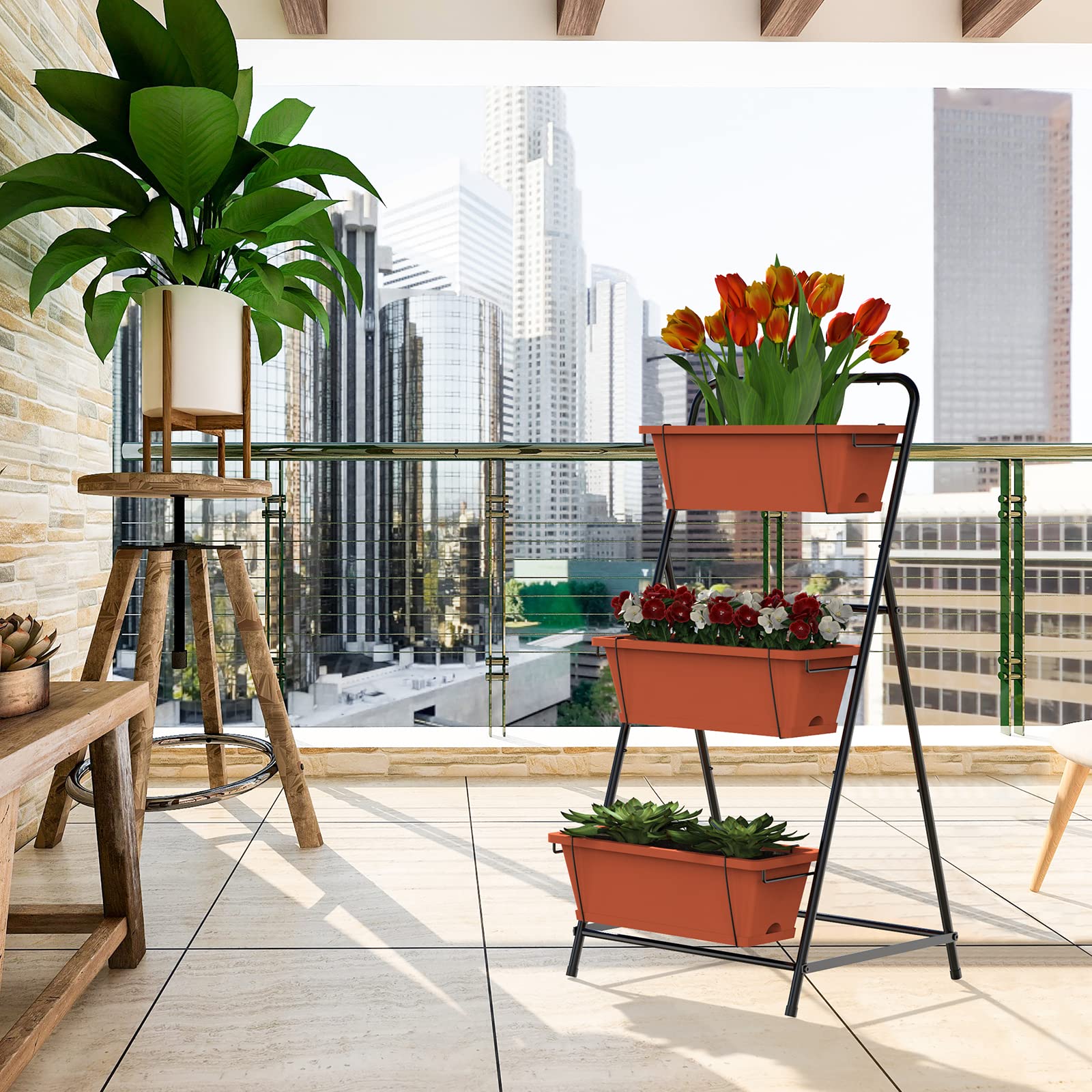 Vertical Garden Planter 3 Tier Vertical Raised Garden Bed Freestanding Elevated Planter Bed With Planter Box And Tray For Indoor And Outdoor Perfect For Vegetables Flowers Herbs Plants Brick Red Patio Lawn Garden Amazon Com